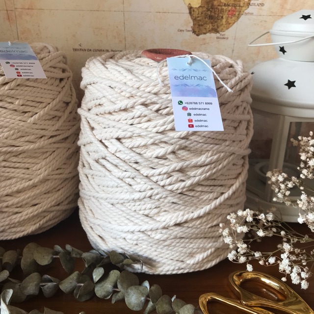 Tali Benang Katun Macrame Natural 3mm 4mm twist Super Sumber : shopee.co.id